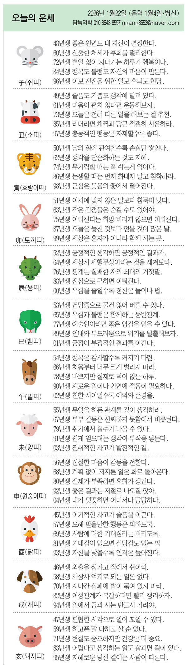 57년생 오해 받을만한 행동은 피하도록.