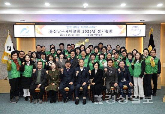 울산남구새마을회(회장 황병철)는 21일 남구청 3층 회의실에서 남구새마을회 임원과 동별 회장단으로 구성된 대의원 40여명이 참석한 가운데 ‘울산남구새마을회 2026년 정기총회’를 개최했다. 이날 2025년도 사업 추진 실적 보고 및 결산, 2026년도 사업 계획 및 예산안을 의결했다.