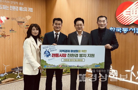 권명호 한국동서발전 사장은 “친환경 봉지 지원이 상인들의 부담을 덜고 동시에 환경보호에 함께 참여하는 계기가 되길 바란다”며 “앞으로도 지역과 환경을 함께 살리는 실천형 사회공헌을 지속 확대해 나가겠다”고 말했다. 오상민기자 sm5@ksilbo.co.kr