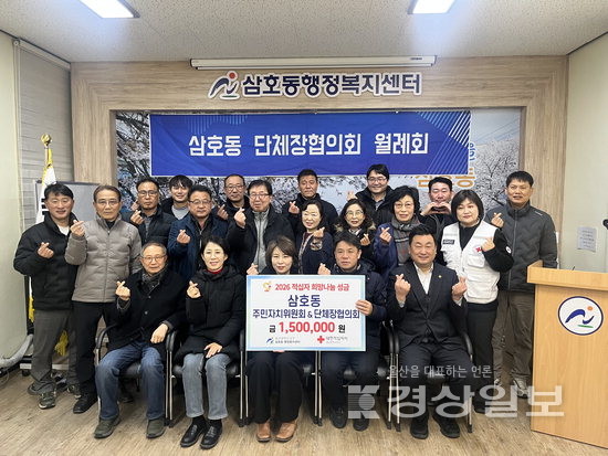 ▲ 울산 남구 삼호동 단체장협의회·주민자치위원회(회장 손광석)는 26일 삼호동 행정복지센터에서 2026년도 적십자회비 150만원을 대한적십자사 울산지사에 전달했다.울산 남구 삼호동 단체장협의회·주민자치위원회(회장 손광석)는 26일 삼호동 행정복지센터에서 2026년도 적십자회비 150만원을 대한적십자사 울산지사에 전달했다. 저작권자 © 울산일보 무단전재 및 재배포 금지 정혜윤 기자 다른기사 보기 페이스북 트위터 카카오스토리 URL복사 기사공유하기