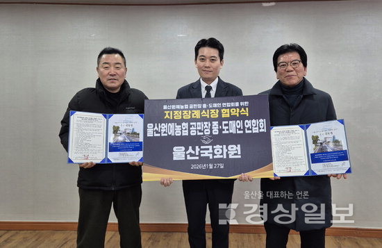 울산국화원(대표이사 신정균)은 27일 울산 원예농협 공판장 중도매인연합회와 지역사회 발전과 고객 서비스 향상을 위한 업무협약을 체결했다. 협약은 지역을 대표하는 장례 서비스 기관과 지역 농산물 유통현장에서 헌신하는 중도매인이 상호 협력체계를 구축해 차별화된 편의를 제공하고 지역경제 활성화에 기여하기 위해 마련됐다.