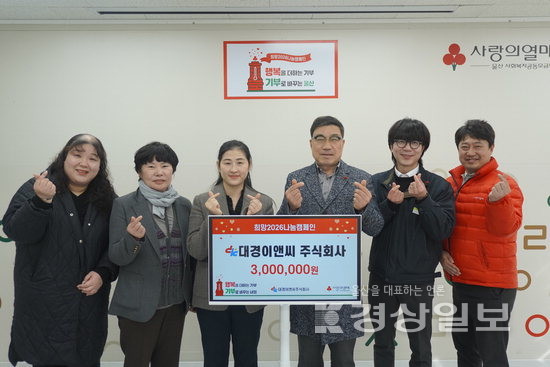 대경이앤씨 이기선 대표가 28일 희망2026나눔캠페인 성금 300만원을 울산사회복지공동모금회에 전달했다. 성금은 지역 내 아동 돌봄을 담당하고 있는 두서지역아동센터와 호계느티나무지역아동센터에 각각 전달될 예정으로 아동들의 건강한 성장과 안정적인 돌봄 환경 조성에 사용된다.