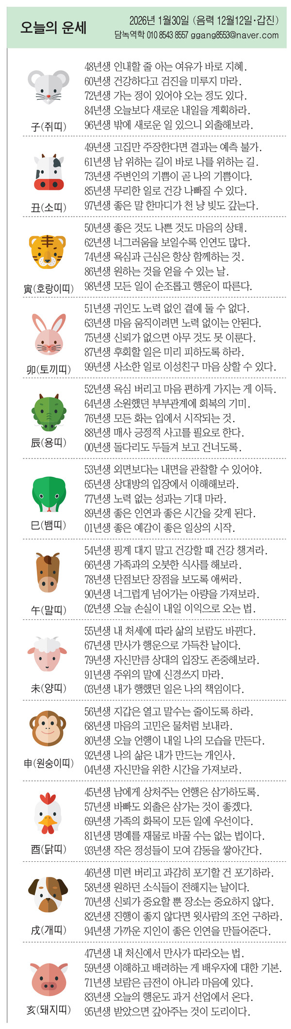 52년생 욕심 버리고 마음 편하게 가지는 게 이득.