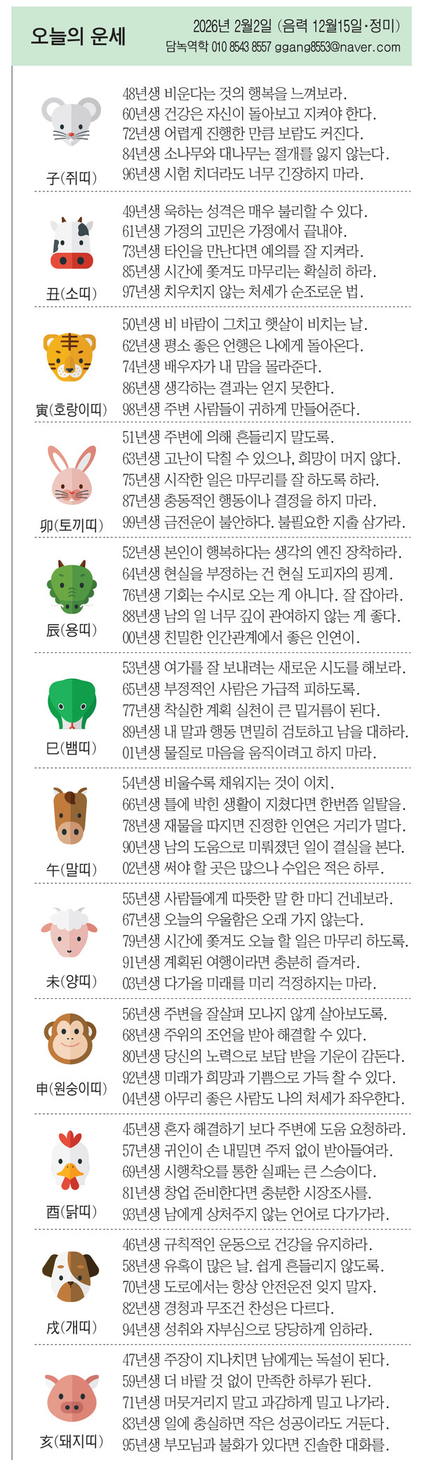 99년생 금전운이 불안하다. 불필요한 지출 삼가라.