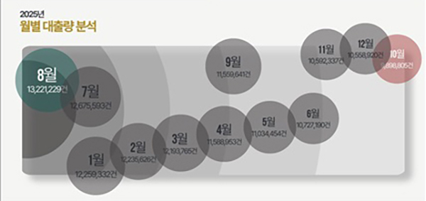 국립중앙도서관이 전국 1583개 공공도서관의 <도서관 정보나루(data4library.kr)>의 지난해 도서 대출 동향을 분석한 결과 공공도서관 총대출량은 약 1억4000만건으로 집계됐다. 이는 2024년보다 3.6% 늘어난 수치다.