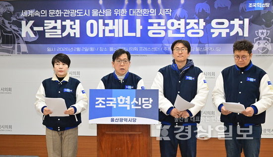 조국혁신당 울산시당은 “수도권은 이미 대형 공연장 포화 상태에 이르렀고, 지방 균형 발전과 부울경 메가시티 전략 차원에서 국립 K-POP 아레나는 울산이 가장 적합한 후보지”라며 “전문가 분석에 따르면 5만석 규모 아레나급 공연장에서 BTS·블랙핑크급 글로벌 아티스트 공연이 열릴 경우, 공연 1회당 지역 경제 파급 효과는 200억원을 상회한다”고 강조했다. 나아가 이들은 “연간 30회만 유치해도 최소 6000억원 이상의 경제 효과와 대규모 관광·숙박·외식·교통 소비가 발생한다”며 “KTX 역세권, 도심 융합 특구, 해양 관광 단지 등 울산에는 국립 아레나 후보지가 다수 존재하지만, 특정 부지를 미리 정해놓고 밀어붙이는 방식이 아니라, 접근성·배후 인구·관광 자원 연계성·경제 효과를 종합 검토하는 전략적 결정”이라고 밝혔다. 이를 위해 조국혁신당 시당은 울산시·울산시의회·전문가·시민 대표가 참여하는‘(가칭) 국립 K-컬처 아레나 유치 위원회’ 구성을 공식 제안했다. 전상헌기자
