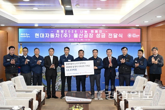 현대자동차 노사는 3일 울산시청에서 ‘2026년 설 맞이 사회공헌 기부금 전달식’을 열고, 지역 사회복지기관과 봉사단체에 12억2300만원을 기탁했다.