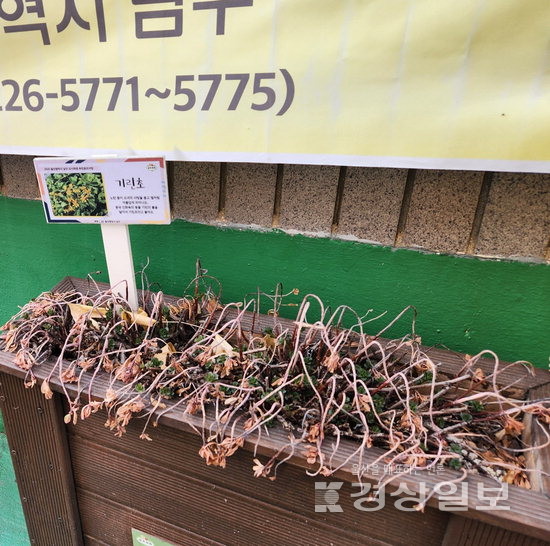 폐하수관 등을 재활용해 만든 화분과 벽화가 남아 있었지만, 풀과 화초는 말라 비틀어져 있었고 상당수 화분은 관리되지 않은 채 방치돼 있었다.