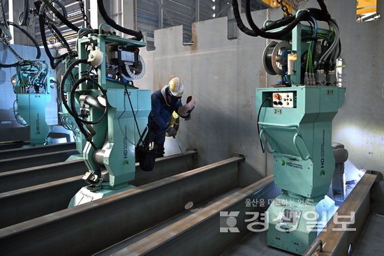 또 선박 한 척을 만들기 위해서는 두꺼운 강판을 절단·가공해 붙여 블록을 만들고, 이를 이어 만드는 과정이 반복되는데, 용접은 난이도가 높고 숙련 인력 의존도가 크다. HD현대중공업은 생산 현장에 로봇을 투입해 자동화에도 박차를 가하고 있다.