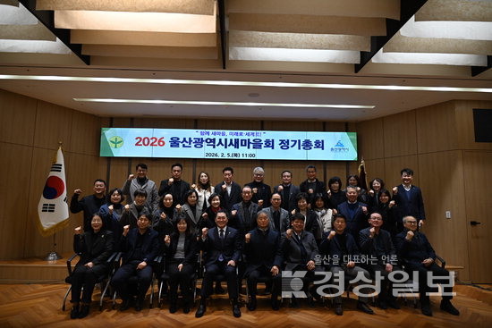 ▲ 울산시새마을회(회장 정대식)는 5일 울산시의회 시민홀에서 새마을회 임원 및 5개 구군 회장 및 회원단체장 등 40여명이 참석한 가운데 2026년도 정기총회를 개최했다.울산시새마을회(회장 정대식)는 5일 울산시의회 시민홀에서 새마을회 임원 및 5개 구군 회장 및 회원단체장 등 40여명이 참석한 가운데 2026년도 정기총회를 개최했다. 저작권자 © 울산일보 무단전재 및 재배포 금지 정혜윤 기자 다른기사 보기 페이스북 트위터 카카오스토리 URL복사 기사공유하기