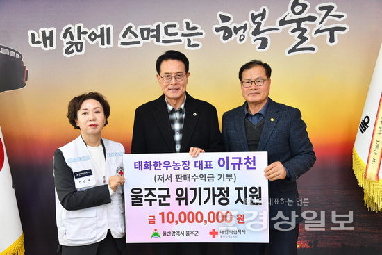이규천 대표는 직접 연구하고 실험한 한우 사육 기술을 집대성한 저서의 판매 수익금을 울주군 내 어려운 이웃을 돕기 위해 기부했다. 이 대표는 30여년간 한우 사육 연구·개발에 매진하며 한국종축개량협회 한우 개량 명인·대한민국 최고 농업기술 한우 명인으로 선정된 한우 전문가다. 양로원·고아원 소고기·백미 등 기부, 소아암 환자 치료비 지원 등 사회공헌에도 관심을 두고 나눔을 실천하고 있다.
