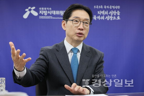 대통령 직속 지방시대위원회 김경수 위원장은 광역자치단체 간 행정통합 추진과 관련해 “행정통합은 (해당지역) 주민들의 의사가 가장 중요하다”고 강조했다.