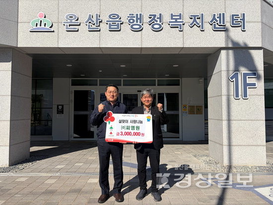 ▲ 씨엠원(대표 장종원)이 설명절을 앞두고 9일 울산 울주군 온산읍 행정복지센터를 방문해 지역 취약계층을 위한 성금 300만원을 기부했다.씨엠원(대표 장종원)이 설명절을 앞두고 9일 울산 울주군 온산읍 행정복지센터를 방문해 지역 취약계층을 위한 성금 300만원을 기부했다. 저작권자 © 울산일보 무단전재 및 재배포 금지 신동섭 기자 다른기사 보기 페이스북 트위터 카카오스토리 URL복사 기사공유하기
