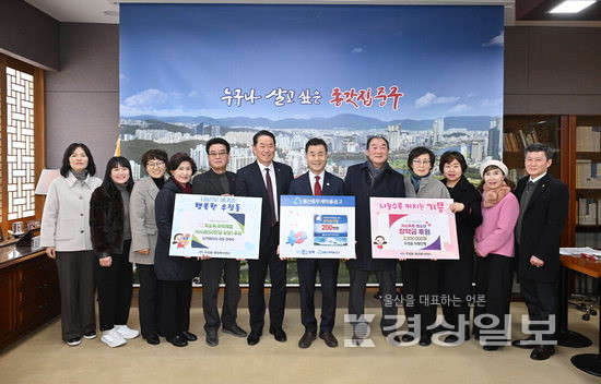 ▲ 울산 중구 우정동 자생단체 13개와 울산중부새마을금고는 9일 중구청 구청장실을 찾아 이웃돕기 성금 430만원과 정해숙 오리돼지요 대표가 기부한 50만원 상당의 식사권을 전달했다.울산 중구 우정동 자생단체 13개와 울산중부새마을금고는 9일 중구청 구청장실을 찾아 이웃돕기 성금 430만원과 정해숙 오리돼지요 대표가 기부한 50만원 상당의 식사권을 전달했다. 저작권자 © 울산일보 무단전재 및 재배포 금지 주하연 기자 다른기사 보기 페이스북 트위터 카카오스토리 URL복사 기사공유하기