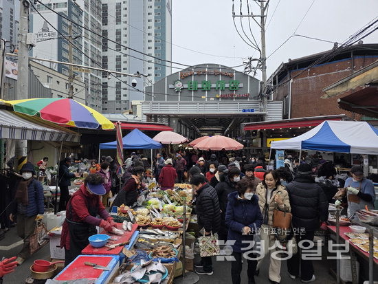 10일 설 연휴를 일주일 앞두고 찾은 울산 중구 태화종합시장. 오일장을 맞아 들어선 좌판과 제수용품을 사러 나온 시민들이 뒤엉켜 시장통은 그야말로 발 디딜 틈 없는 인산인해를 이뤘다.