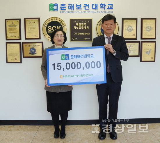 ▲ NH농협은행 울산 울주군지부(지부장 이명주)는 10일 춘해보건대(총장 김희진)에 지역 인재 양성과 대학발전을 위한 발전기금 1500만원을 전달했다.NH농협은행 울산 울주군지부(지부장 이명주)는 10일 춘해보건대(총장 김희진)에 지역 인재 양성과 대학발전을 위한 발전기금 1500만원을 전달했다. 저작권자 © 울산일보 무단전재 및 재배포 금지 서정혜 기자 다른기사 보기 페이스북 트위터 카카오스토리 URL복사 기사공유하기