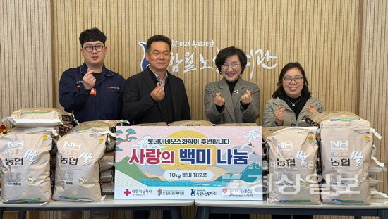 ▲ 롯데이네오스화학은 11일 대한적십자사 울산지사와 함께 도산노인복지관과 함월노인복지관에서 ‘사랑의 백미 나눔 전달식’을 열고 500만원 상당 백미 182포를 후원했다.롯데이네오스화학은 11일 대한적십자사 울산지사와 함께 도산노인복지관과 함월노인복지관에서 ‘사랑의 백미 나눔 전달식’을 열고 500만원 상당 백미 182포를 후원했다. 저작권자 © 울산일보 무단전재 및 재배포 금지 서정혜 기자 다른기사 보기 페이스북 트위터 카카오스토리 URL복사 기사공유하기