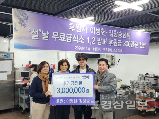▲ 울산 자영업자인 이병헌·김창승씨는 11일 (사)21세기울산공동체운동에서 운영하는 무료급식소 ‘밥퍼’를 찾아 설명절 후원금 300만원을 전달하고 급식봉사를 진행했다. 이병헌씨는 “홀몸노인과 취약계층에게 조금이라도 도움이 됐으면 하는 마음으로 후원했다”고 밝혔다.울산 자영업자인 이병헌·김창승씨는 11일 (사)21세기울산공동체운동에서 운영하는 무료급식소 ‘밥퍼’를 찾아 설명절 후원금 300만원을 전달하고 급식봉사를 진행했다. 이병헌씨는 “홀몸노인과 취약계층에게 조금이라도 도움이 됐으면 하는 마음으로 후원했다”고 밝혔다.