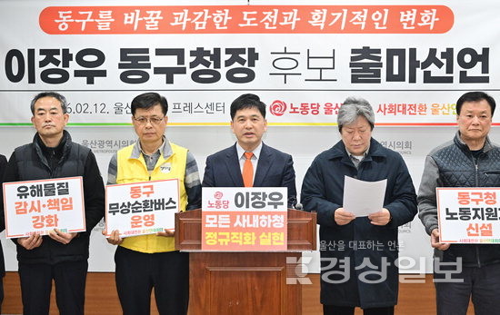 이 위원장은 12일 울산시의회 프레스센터에서 기자회견을 열고 “노동의 모순이 극대화된 울산 동구에서 획기적인 변화를 이끄는 행정으로 노동정치의 희망을 만드는 진보 구청장이 되겠다”고 밝혔다.