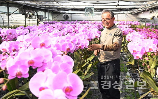 절기상 ‘우수’인 19일 울산 북구 중산동 농소화훼단지에서 김수선 수정농원 대표가 지역 특산물인 농소 호접란 출하작업을 하고 있다. 김동수기자 dskim@ksilbo.co.kr