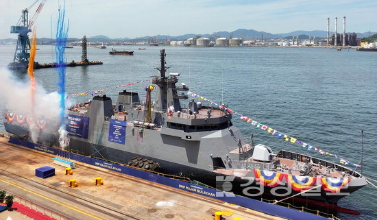 HD현대중공업은 최근 필리핀 해군으로부터 수주한 원해경비함 6척 가운데 첫번째 함정인 라자술라이만(RAJAH SULAYMAN)함을 납기 일정보다 5개월 가까이 앞당겨 성공적으로 인도했다고 23일 밝혔다. 이번에 인도한 원해경비함은 대잠용 음향 탐지기를 탑재했고, 함정 내 다양한 미션 모듈 운용 공간을 마련해 해상 감시·해양안보 임무·군사 작전 등 다양한 작전 환경에서 운용될 수 있도록 설계됐다.