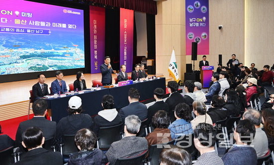 시는 이날 김 시장을 비롯해 남구주민 등 400여명이 참석한 가운데 ‘울산 온(ON) 미팅’을 개최하고 남구 주요 현안을 공유한 뒤 주민들과 질의응답을 가졌다.