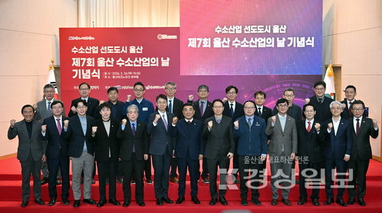 시는 26일 울산테크노파크 본부동 강당에서 ‘제7회 울산 수소산업의 날 기념행사’를 열었다. 행사에는 김두겸 울산시장과 시의원, 수소산업 관련 기관장, 기업 대표 등 100여명이 참석했다. 행사는 수소산업 육성 공로 표창 수여, 울산 수소산업 육성방안 및 울산형 K-수소도시 조성사업 계획 발표, 업무협약 체결 등으로 진행됐다.