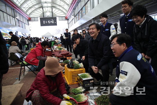 조국혁신당 조국 대표는 지난달 28일 울산을 찾아 울주군 남창 옹기종기시장을 방문(사진)하고 온산 산업폐기물 매립장 조성 문제 관련 시민단체와 간담회를 진행했다.