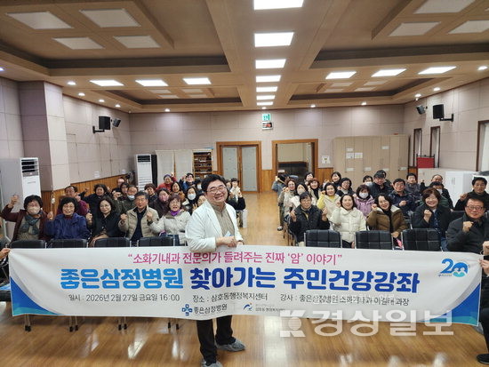 ▲ 은성의료재단 좋은삼정병원(원장 양희영)은 소화기내과 이길태 과장이 지난달 27일 남구 삼호동주민센터에서 ‘소화기내과 전문의가 들려주는 진짜 ‘암’ 이야기’를 주제로 ‘찾아가는 주민건강강좌’를 진행했다고 2일 밝혔다.은성의료재단 좋은삼정병원(원장 양희영)은 소화기내과 이길태 과장이 지난달 27일 남구 삼호동주민센터에서 ‘소화기내과 전문의가 들려주는 진짜 ‘암’ 이야기’를 주제로 ‘찾아가는 주민건강강좌’를 진행했다고 2일 밝혔다.