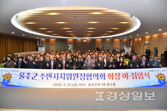 ▲ 울산 울주군 주민자치위원장협의회 회장 이취임식이 지난달 27일 군청 문수홀에서 열린 가운데 이순걸 군수와 최길영 군의장 및 시군의원, 정영기 이임 회장, 서억수 취임 회장 등 참석자들이 기념 촬영을 하고 있다울산 울주군 주민자치위원장협의회 회장 이취임식이 지난달 27일 군청 문수홀에서 열린 가운데 이순걸 군수와 최길영 군의장 및 시군의원, 정영기 이임 회장, 서억수 취임 회장 등 참석자들이 기념 촬영을 하고 있다