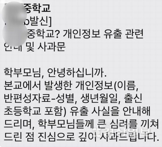 학생 이름부터 성별, 생년월일, 출신 초등학교까지 포함된 개인정보가 유출돼 있었기 때문이다.