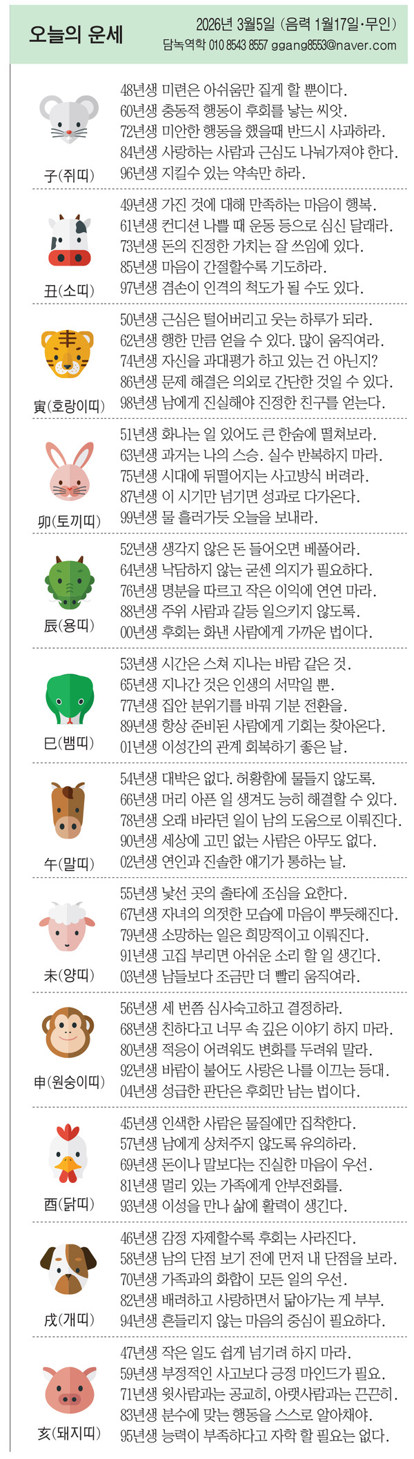 55년생 낯선 곳의 출타에 조심을 요한다.