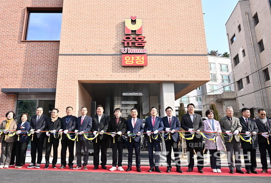청년층 주거 안정을 위한 주택인 유홈(U home) 양정 준공식이 4일 울산시 북구 양정동 일원에서 열렸다. 김두겸 울산시장과 박천동 북구청장 등 참석 내빈들이 준공 기념 테이프를 자르고 있다. 김도현기자 do@ksilbo.co.kr