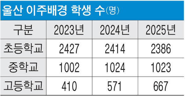 현재 울산 이주배경 학생의 75%는 국내 출생이지만, 나머지 25%에 달하는 1000여명은 중도입국이나 외국인 가정 자녀다. 특히 중도입국 학생은 한국어 능력이 전혀 없는 상태에서 교실에 배치되는 경우가 많아 적응에 적지 않은 어려움을 겪는다. 실제 교육 현장에서는 한국어 소통 부재로 인한 학습 결손과 정서적 소외 문제가 반복되는 실정이다.